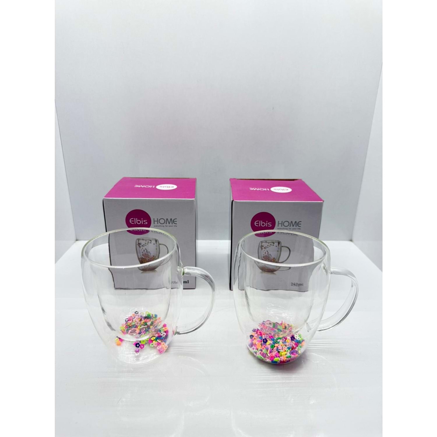 ELB-192 ÇİFT CİDARLI FOSFORLU KULPLU BARDAK 350 ML