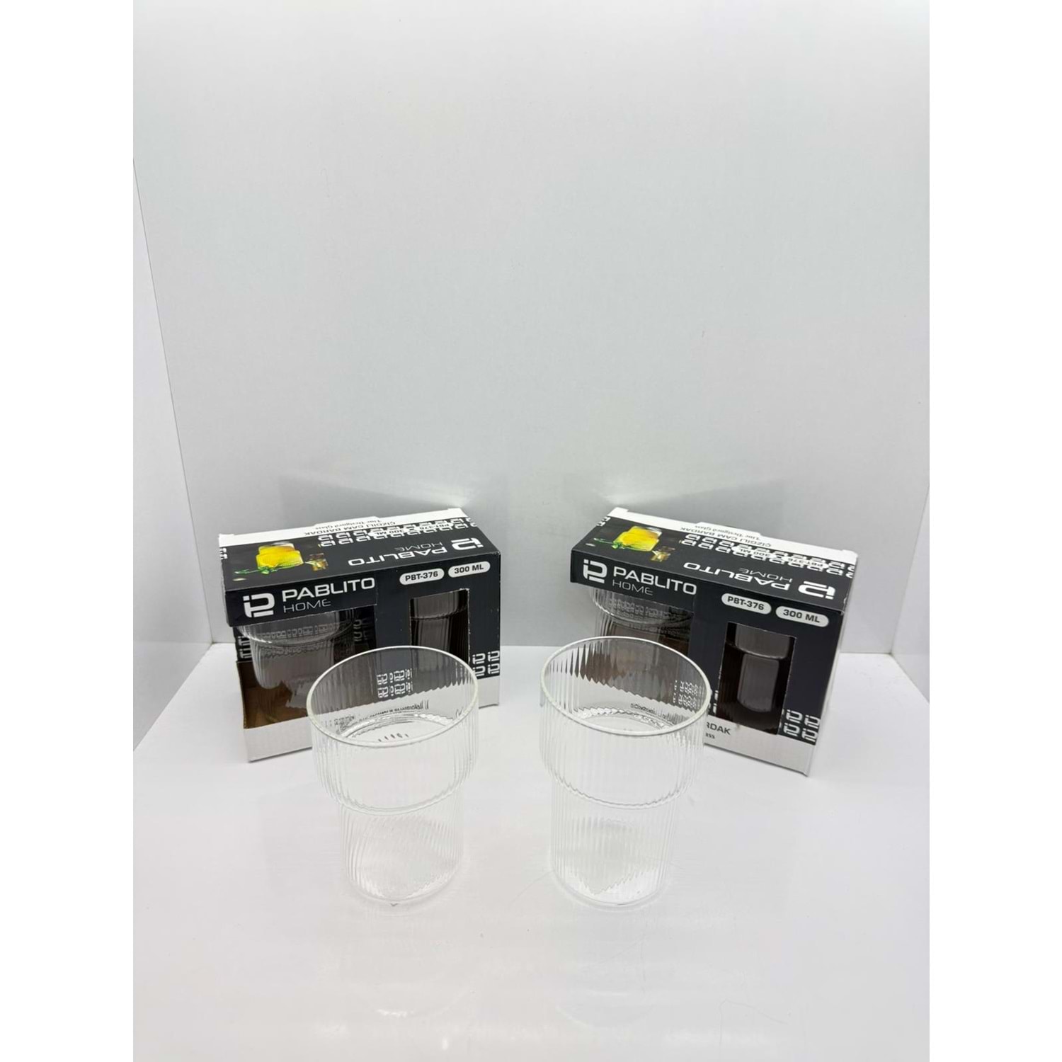 PBT-376 ÇİZGİLİ CAM BARDAK 2'Lİ 300 ML